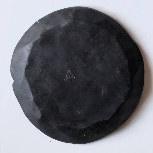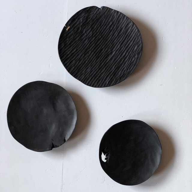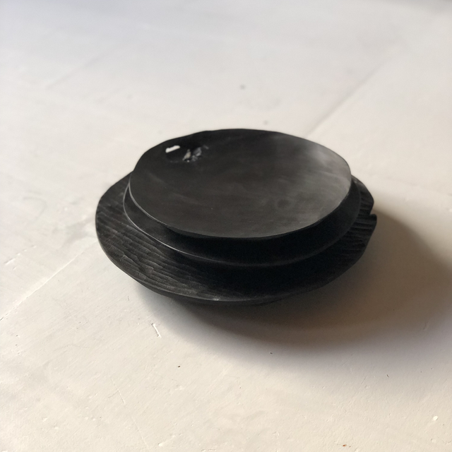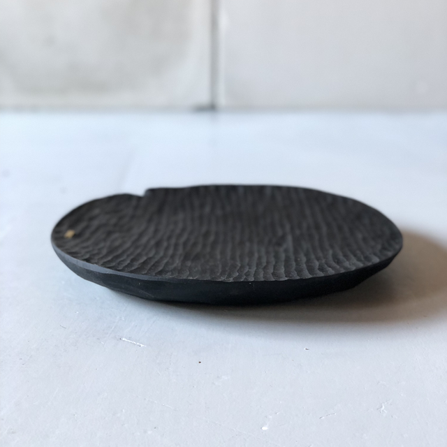 Beau plateau sculpté à la gouge en merisier teinté noir et huilé
